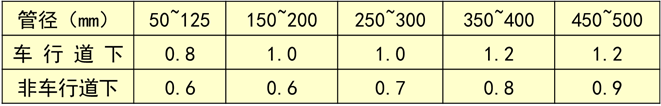 直埋敷設管道最小覆土深度應考慮土壤和地面活荷載對管道強度的影響并保證管道不發(fā)生縱向失穩(wěn)。具體規(guī)定應按《城鎮(zhèn)直埋供熱管道工程技術規(guī)程》CJJ/T81規(guī)定執(zhí)行。
