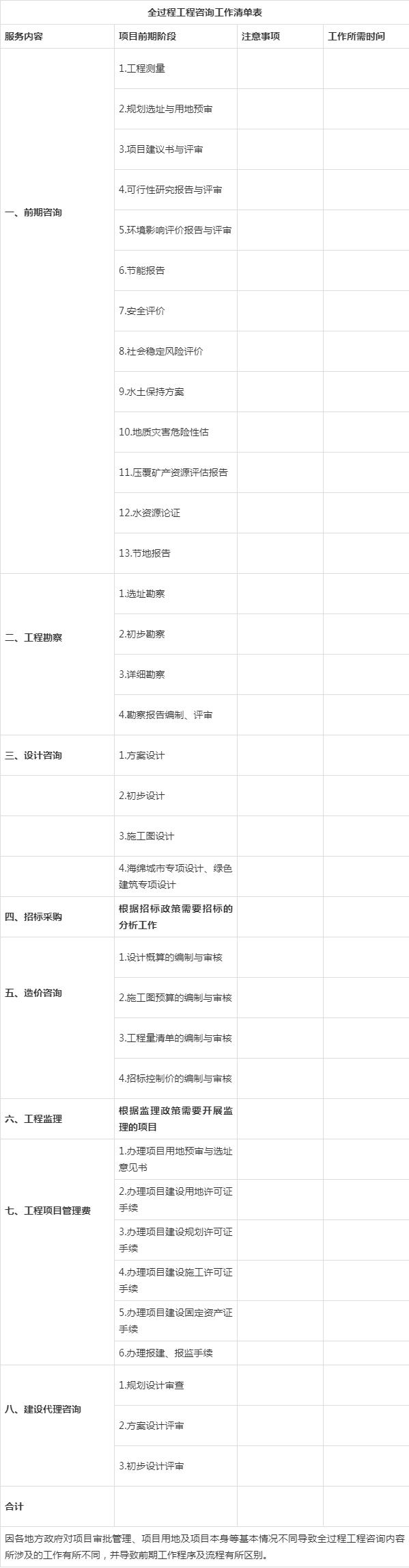 不難看出,以往的工程咨詢更多是關(guān)注項(xiàng)目建設(shè)準(zhǔn)備期(前期),而全過(guò)程工程咨詢還要求關(guān)注項(xiàng)目建設(shè)實(shí)施期及竣工期(后期),服務(wù)貫穿整個(gè)建設(shè)項(xiàng)目全生命周期(全過(guò)程)。
