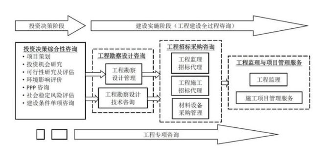 全過(guò)程工程咨詢是指工程咨詢方綜合運(yùn)用多學(xué)科知識(shí)、工程實(shí)踐經(jīng)驗(yàn)、現(xiàn)代科學(xué)技術(shù)和經(jīng)濟(jì)管理方法,采用多種服務(wù)方式組合,為委托方在項(xiàng)目投資決策、建設(shè)實(shí)施乃至運(yùn)營(yíng)維護(hù)階段持續(xù)提供局部或整體解決方案的智力性服務(wù)活動(dòng)。