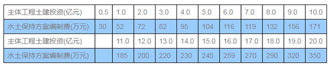 水土保持咨詢服務(wù)取費(fèi)可參考《關(guān)于開發(fā)建設(shè)項(xiàng)目水土保持咨詢服務(wù)費(fèi)用計(jì)列的指導(dǎo)意見》(保監(jiān)〔2005〕22號(hào)),其中可行性研究階段的開發(fā)建設(shè)項(xiàng)目水土保持方案編制費(fèi)可參考下表標(biāo)準(zhǔn)計(jì)列。