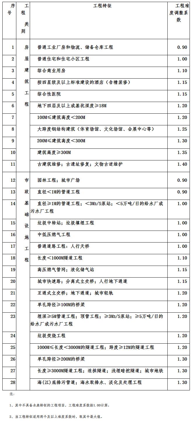 工程復(fù)雜程度調(diào)整系數(shù):0.8~1.2(工程復(fù)雜程度具體調(diào)整系數(shù)由工程咨詢機(jī)構(gòu)與委托單位根據(jù)各類工程情況協(xié)商確定)。