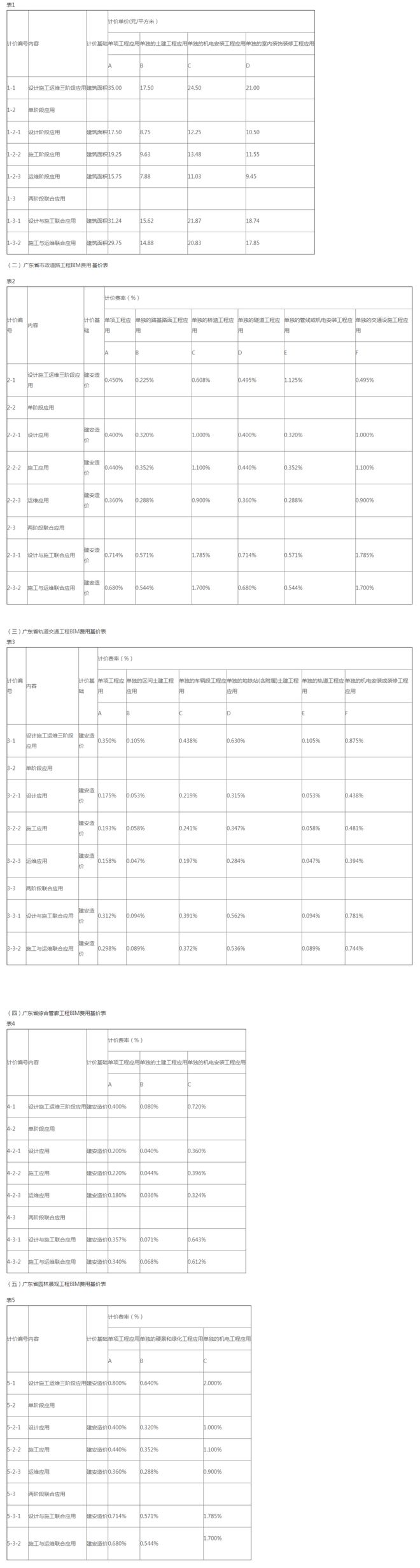 (2)工業(yè)與民用建筑工程,當(dāng)建筑面積少于2萬(wàn)平方米時(shí),按2萬(wàn)平方米作為計(jì)價(jià)基礎(chǔ)計(jì)算建筑信息模型(BIM)技術(shù)應(yīng)用費(fèi)用;市政道路工程、軌道交通工程、地下綜合管廊工程的造價(jià)少于1億元時(shí),按1億元作為計(jì)價(jià)基礎(chǔ)計(jì)算建筑信息模型(BIM)技術(shù)應(yīng)用費(fèi)用;園林景觀工程的造價(jià)少于1000萬(wàn)元時(shí),按1000萬(wàn)元作為計(jì)價(jià)基礎(chǔ)計(jì)算建筑信息模型(BIM)技術(shù)應(yīng)用費(fèi)用。