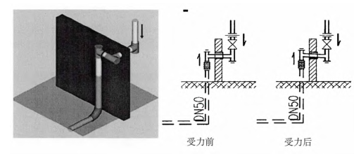 建筑的沉陷對煤氣管線的結(jié)構(gòu)設(shè)計有很大的影響。高層建筑因其自身的自重,其沉陷對其的作用不可忽略,而沿其壁面鋪設(shè)的煤氣管線,在進行結(jié)構(gòu)的同時,還應(yīng)對其沉降的負面效應(yīng)進行分析。為了降低建筑結(jié)構(gòu)的沉陷對天然氣管線的負面作用,可以采用以下幾種方法來進行:1)在豎管上安裝波浪式的補償;2)增加導(dǎo)流管道的穿壁直徑。3) 引入管水平段設(shè)置金屬軟管等。