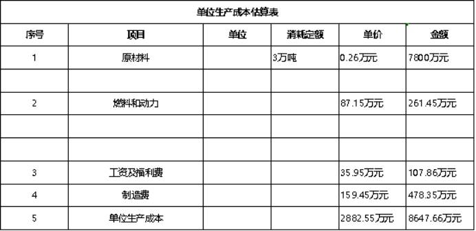 1)單位生產(chǎn)成本的估算,序號(hào)項(xiàng)目規(guī)格單位消耗定額單位金額