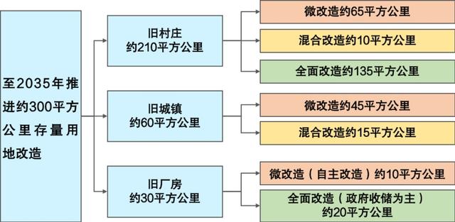 《專項(xiàng)規(guī)劃》統(tǒng)籌新增用地與存量用地資源配置,規(guī)劃至2025年,累計(jì)推進(jìn)城市更新約130平方公里(含城中村改造70平方公里);至2030年,累計(jì)推進(jìn)城市更新約230平方公里(含城中村改造120平方公里);至2035年累計(jì)推進(jìn)城市更新約300平方公里(含城中村改造155平方公里),通過(guò)微改造、混合改造、全面改造多種方式并舉,推動(dòng)低效存量土地的盤活再利用。