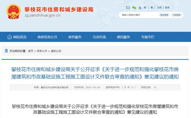 為貫徹落實(shí)國(guó)務(wù)院辦公廳《關(guān)于全面開展工程建設(shè)項(xiàng)目審批制度改革的實(shí)施意見》(國(guó)辦發(fā)〔2019〕11號(hào))、《住房城鄉(xiāng)建設(shè)部關(guān)于推進(jìn)工程建設(shè)項(xiàng)目審批標(biāo)準(zhǔn)化規(guī)范化便利化的通知》(建辦〔2023〕48號(hào))等有關(guān)要求,進(jìn)一步提升審批服務(wù)效能,更好滿足企業(yè)和群眾辦事需求,我局牽頭起草了《關(guān)于進(jìn)一步規(guī)范和強(qiáng)化攀枝花市房屋建筑和市政基礎(chǔ)設(shè)施工程施工圖設(shè)計(jì)文件聯(lián)合審查的通知(征求意見稿)》,現(xiàn)向社會(huì)公開征求意見,請(qǐng)于2023年11月20日18:00前以書面或郵件形式反饋我局。