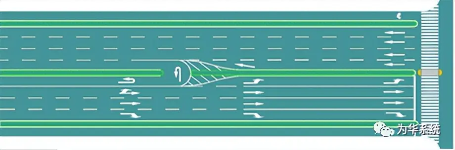 圖6 縮小機(jī)非分隔帶寬度并縮小車行道寬度設(shè)置右轉(zhuǎn)專用道