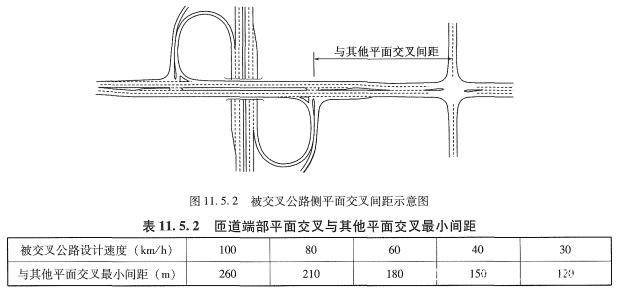 《細(xì)則》11.5.2條規(guī)定兩相鄰平面交叉的最小間距,包括設(shè)置加減速車道和交織車道,該規(guī)定值一般大于安全停車視距。