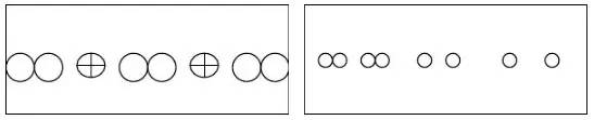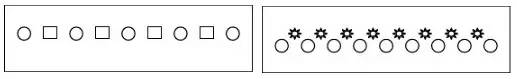 比如,盆花放置時利用變?nèi)~木和散尾葵兩種質(zhì)地、顏色、高度等完全不相近的盆栽間隔擺放,形成既有分割空間作用還不至于隔斷空間、增強通透性的效果,還能打破一種盆栽的單調(diào)、呆板的氛圍。圖2表示間隔韻律。左圖表示中間間隔另一種不同的植物,結(jié)合連續(xù)韻律表現(xiàn)。右圖表示同種植物間間隔不同的植物并且間隔距離漸變,形成間隔韻律,結(jié)合漸變韻律共同表現(xiàn)。