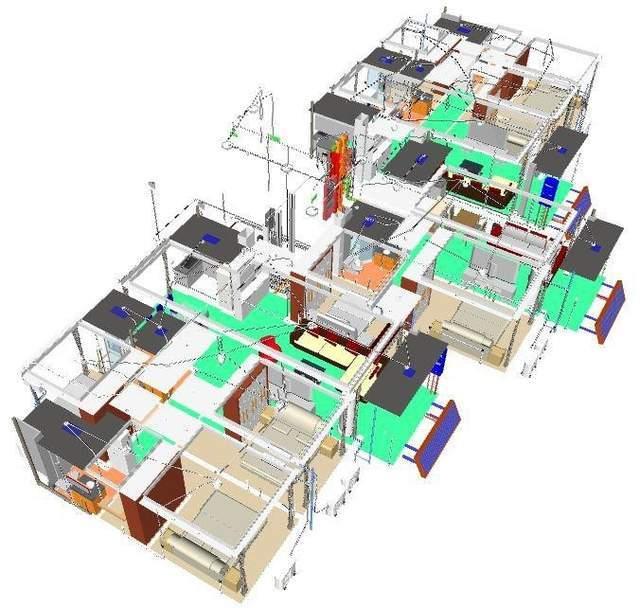 ① 總包方通過 BIM 模型深化設計、結(jié)合二維深化設計完成 BIM深化設計模型,即施工模型,通過施工模型完成對管線綜合圖及復雜 位置機電綜合剖面圖;
