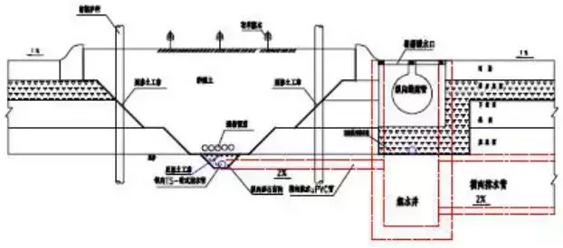 8.滲溝:利用滲透方式匯集流向路基的地下水,并通過溝底通道將水排至指定的地點,起到降低地下水位或攔截地下水。