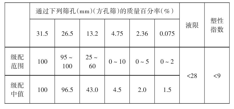 根據分析,材料的滲透系數應大于1500m/d,7d浸水無側限抗壓強度應不小于3.5~5MPa,這兩個指標可作為質量控制的關鍵,完成水泥穩(wěn)定碎石混合料的設計。