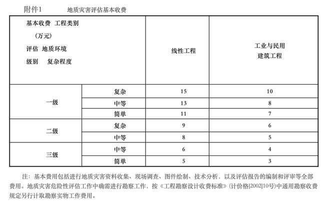 附件1:地質(zhì)災(zāi)害評估基本收費(fèi)