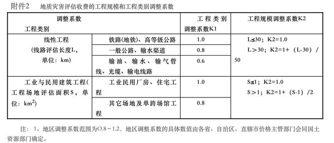 附件2:地質(zhì)災(zāi)害評估收費(fèi)的工程規(guī)模和工程類別調(diào)整系數(shù)