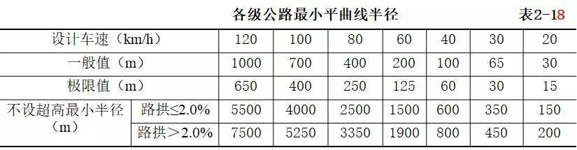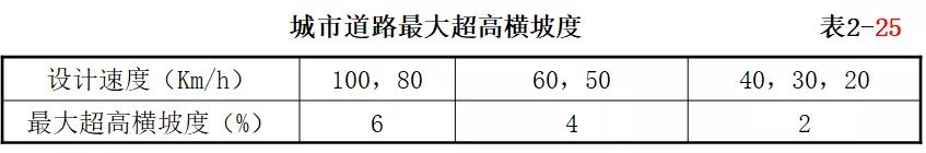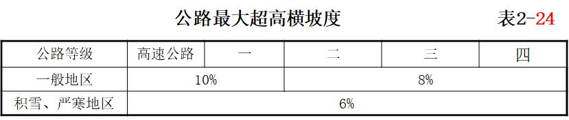當曲線半徑小于表2-20或表2-23中規(guī)定的不設超高最小半徑時,均應設置超高