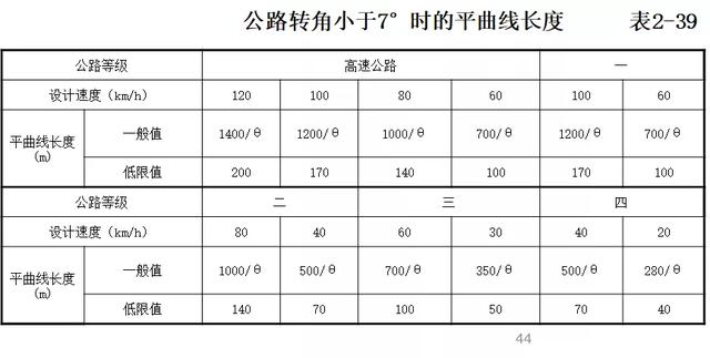 當?shù)缆忿D角小于7°時,為防止駕駛員在視覺上產生急彎錯覺,而導致操縱失誤,應設較長的平曲線