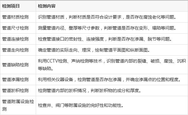 地下管網(wǎng)檢測項目涵蓋以下方面: